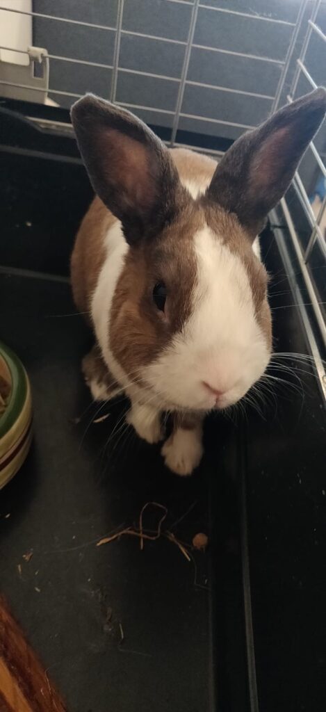 « Je suis un lapin né le 21 avril 2014, trouvé et recueilli par mon humain qui vivait à l’époque en région parisienne pour ensuite déménager à Libourne.